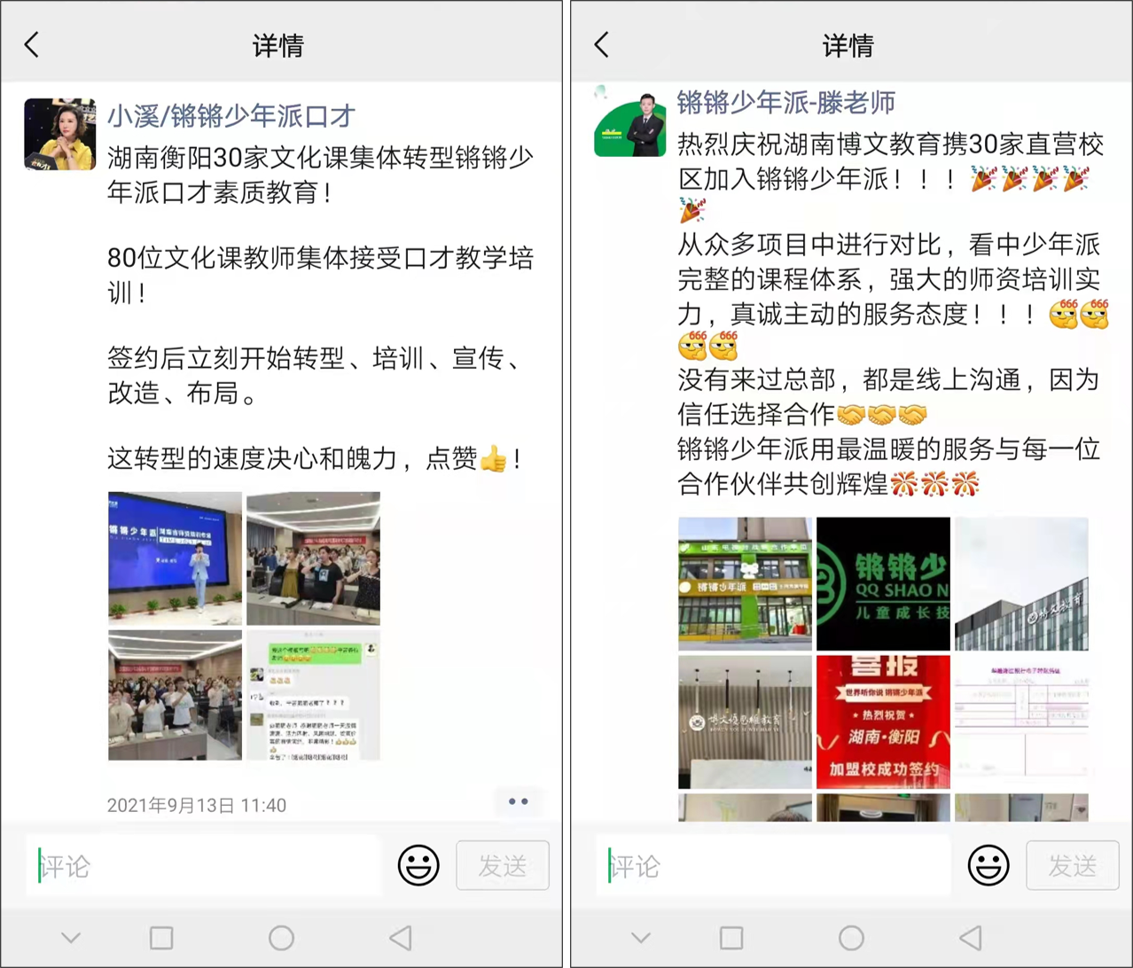 此次锵锵少年派和柏辰“优课汇”达成战略合作,堪称强强联合、合作共赢!“优课汇”将发挥平台优势,利用合作方优势课程和体系,在招商加盟、市场推广和后端服务等方向为品牌助力。未来,锵锵少年派与“优课汇”平台将携手聚势,凝智聚力,致力于行业创新发展